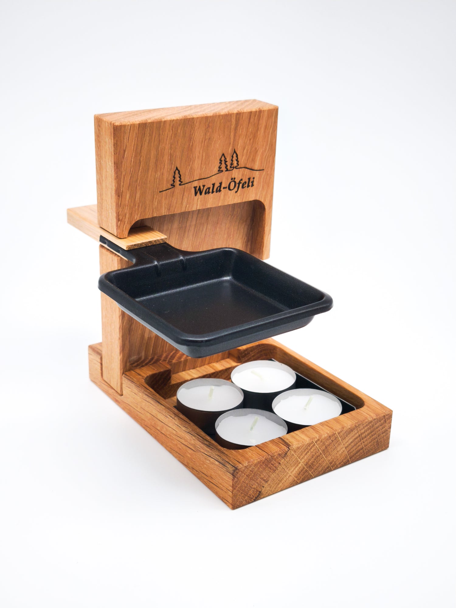...ist die perfekte Kombination aus Holz, Design und Genuss. Stromlos präsentiert sich das Öfeli in jeder Location romantisch und ermöglicht das Zubereiten leckerer Speisen über Kerzenflammen.